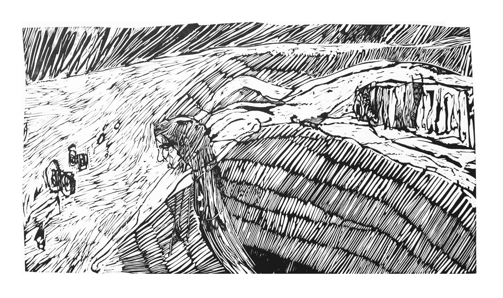 | Woman of the Dunes - House, linocut, paper size:35x50cm, ed.30 |